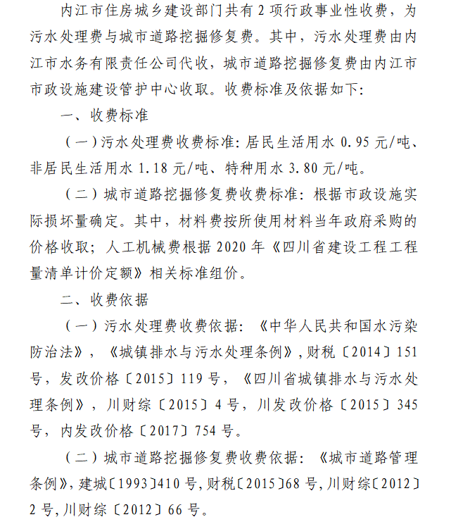 內(nèi)江市住房城鄉(xiāng)建設部門行政事業(yè)性收費說明